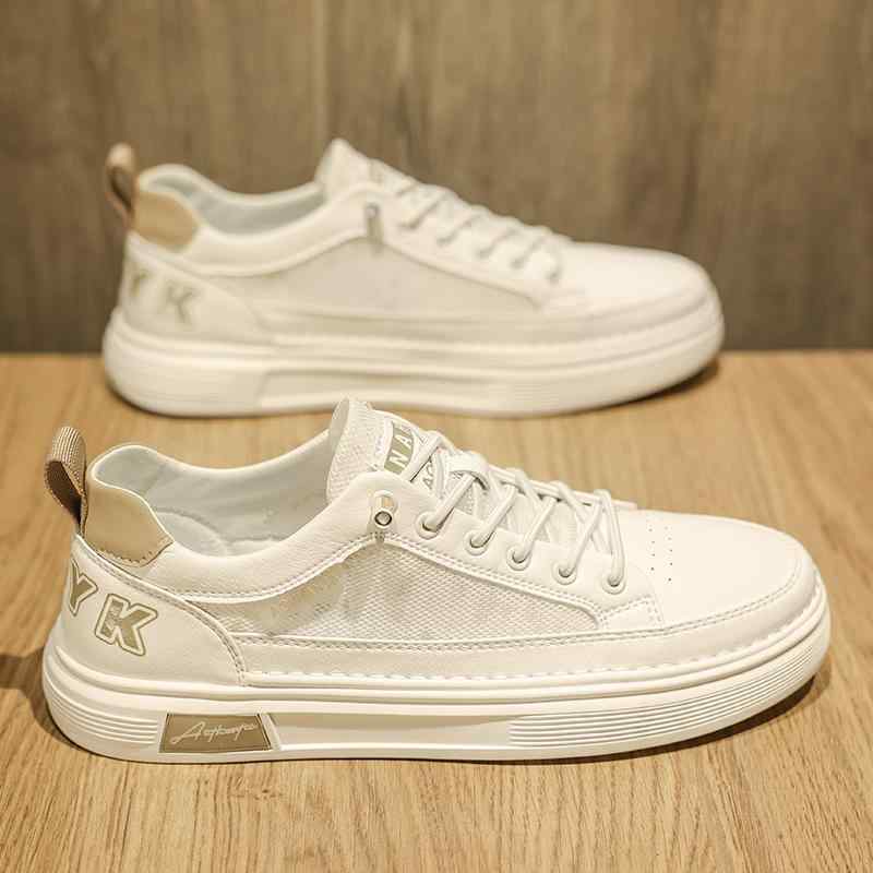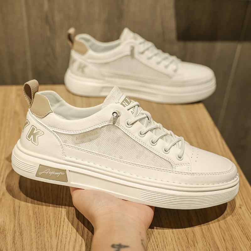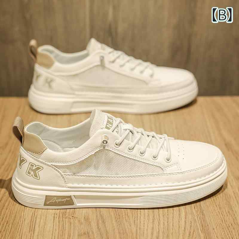 白スニーカー メンズ メッシュ 透け感 オシャレ かっこいい スニーカー 韓国系 フラット ホワイト ベージュ 無地 運動靴 男性用 靴 くつ きれいめ 春スニーカー 夏スニーカー スタイリッシュ ナチュラル 大学生 抜け感 爽やか フラット ローカット