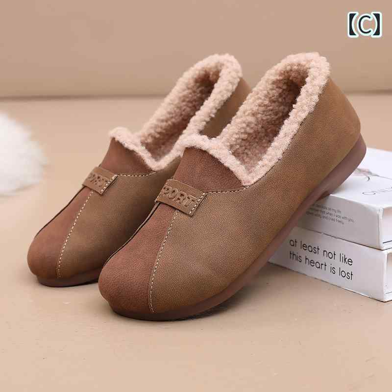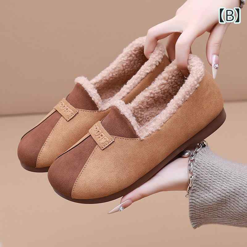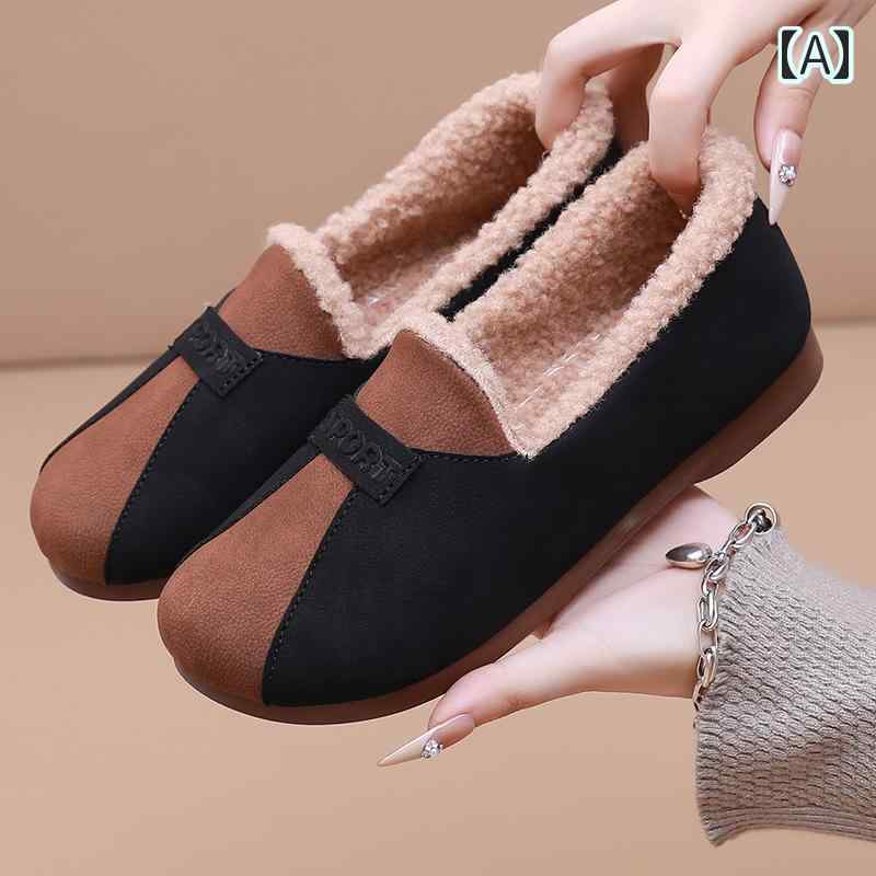 モカシン もこもこ バイカラー スリッポン シューズ スエード風 可愛い レトロ 裏起毛 内ボア ローファー スニーカー レディース 黒 ブラック 茶色 ブラウン カーキ 切り替え 個性的 ベルベット 暖かい 軽い 秋 冬 おしゃれ きれいめ くつ