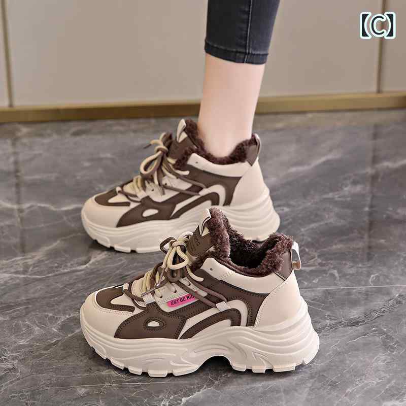 スニーカー 厚底 レディース 女性 韓国 ストリート 春夏 秋 冬 スポーツ シューズ 靴 クツ カジュアル シンプル裏起毛 可愛い かわいい おしゃれ お出かけ デート 通学 学生 通勤 ロゴ ブラック 黒 ベージュ ブラウン プレゼント 誕生日 もこもこ ふわふわ 裏ボア モコモコ 運動靴 暖かい 寒くない 脚長 個性的 オシャレ オルチャン系 厚底スニーカー バイカラー 黒 白 茶色
