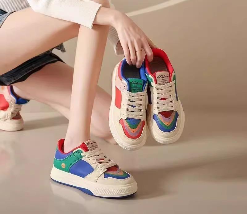 スニーカー カラフル ポップ 個性的 レザースニーカー 運動靴 レディース 女性用 厚底 シューズ レインボー 虹色 青 赤 ブルーレッド ダッドスニーカー 個性派 目立つ 通気性 滑りにくい かわいい おしゃれ 個性派 華やか レトロ 韓国系 学生