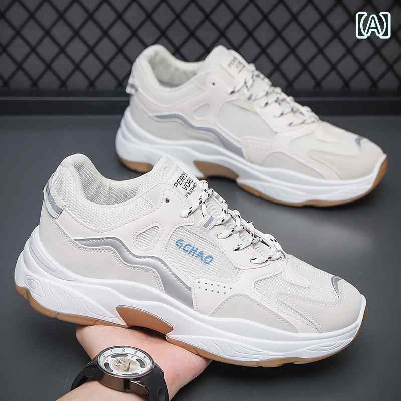 ダッドスニーカー メッシュ 通気性 爽やか かっこいい 白 黒 スニーカー 厚底 ハード ごつめ ストリート 運動靴 メンズ 男性用 靴 くつ ダッドシューズ 滑り止め 履きやすい ランニング ウォーキング 学生 通勤 走れる 白スニーカー 黒スニーカー