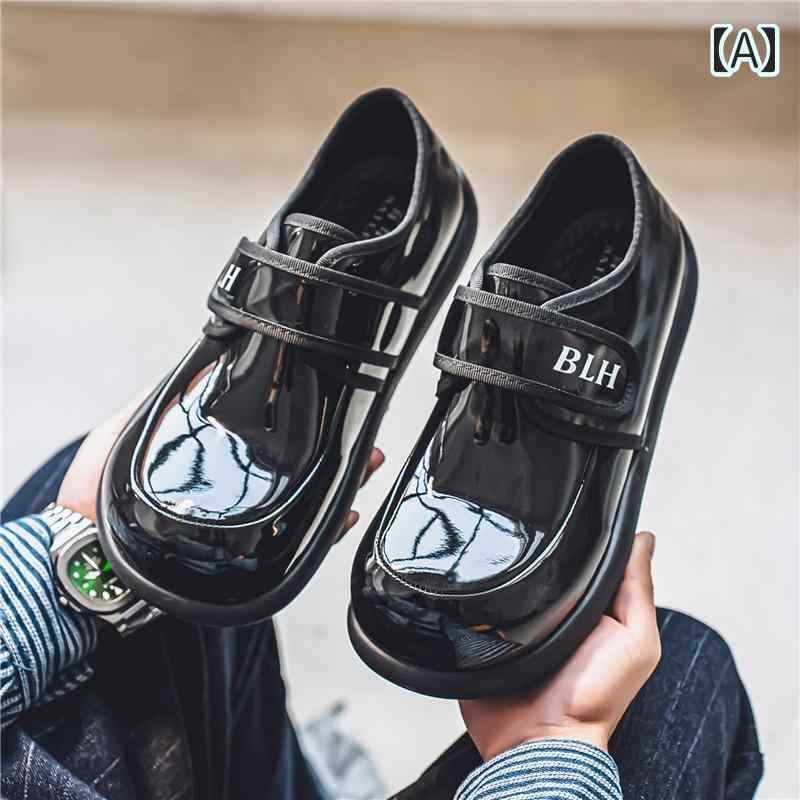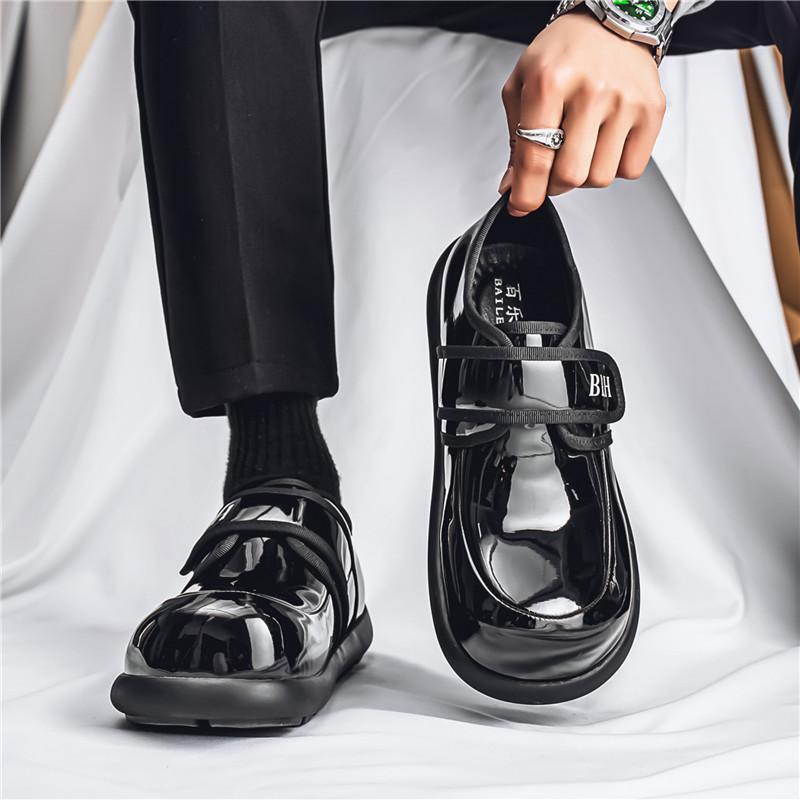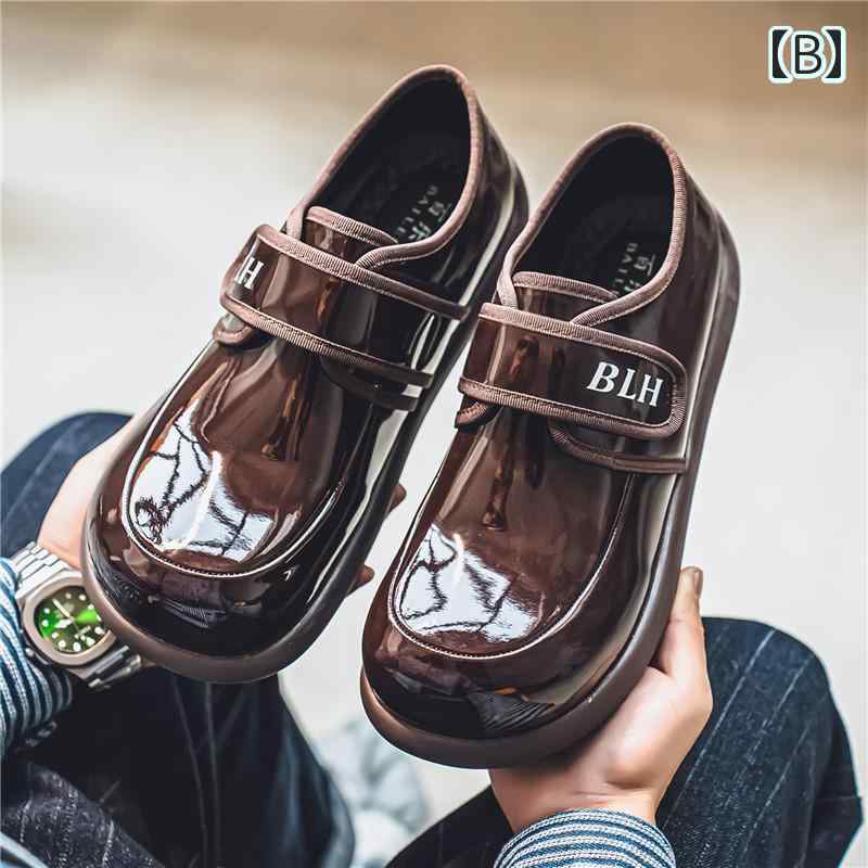 ビジネスシューズ ローファー 黒 茶色 かっこいい レザーシューズ 光沢 エナメル 韓国系 メンズ スリッポン 男性用 ブラック ブラウン ベルト ぽってり きれいめ きちんと感 カジュアル フォーマル 通勤 オフィス 通学 学生 上品 セレブ ツヤあり