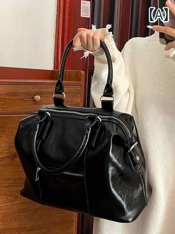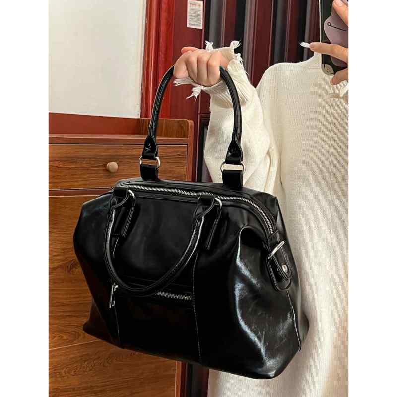 2way トートバッグ ショルダーバッグ 黒 大人可愛い 大容量 大型 レザーバッグ ファスナー 通学バッグ JK 高校生 大学生 学校 スクール用 カバン レザー フォーマル ビジネスバッグ 仕事 通勤 ブラック 無地 ソフトレザー 旅行 たくさん入る