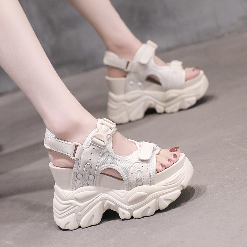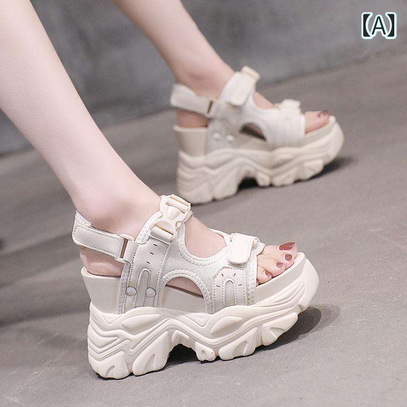 10.5cm ウェッジソール スポーツサンダル 黒 白 かっこいい 韓国系 スポサン ビーサン レディース 超厚底 身長アップ 美脚 サンダル ブラック ホワイト 無地 シンプル ベーシック 使いやすい 合わせやすい ベルト マニッシュ ダッド 楽ちん