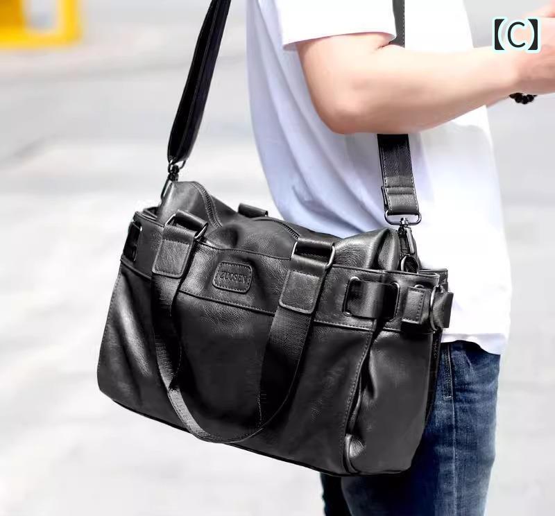 ショルダーバッグ メッセンジャーバッグ 黒 メンズ かっこいい ソフトレザー 韓国系 高級感 2way トートバッグ ビジネスバッグ 仕事 通勤 オフィス 営業 学校 通学 柔らかい レザーバッグ 男性用 茶色 ブラック ブラウン 肩がけ 革鞄 上品