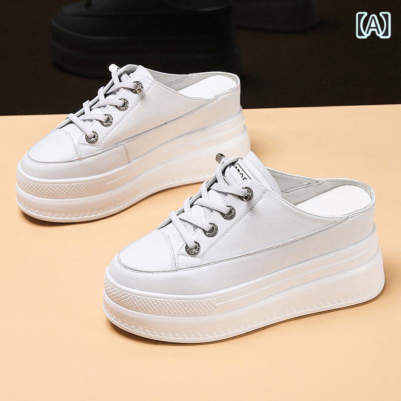 8cm 超厚底 スニーカー サンダル 黒 白 可愛い 韓国風 スリッパ レディース サボ 春夏 シューズ 紐あり レースアップ スポーティー かっこいい 個性的 フラット バイカラー モノクロ 運動靴 ラフ 大学生 JK ルーズ 海 ビーチ デイリー