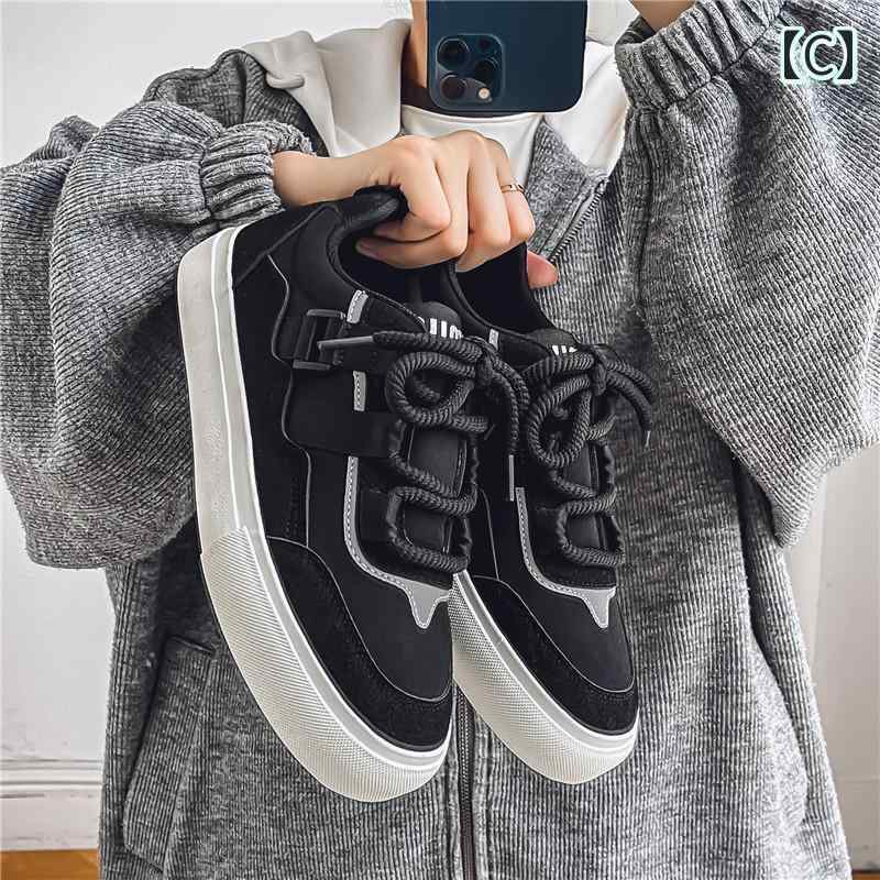 スニーカー スエード レトロ かっこいい 韓国系 厚底 シューズ 運動靴 メンズ 男性用 靴 くつ 厚底 ローカット 個性的 黒 緑 茶色 ブラウン グリーン ブラック ベルト バイカラー 切り替え デザイン性 海外 モデル ユニーク マット レザー