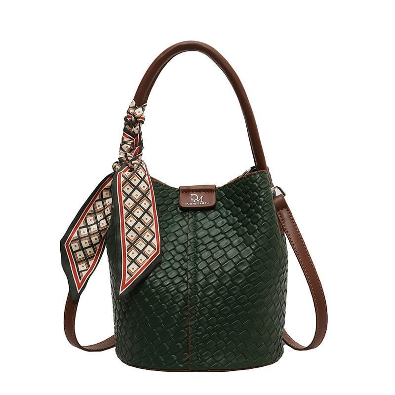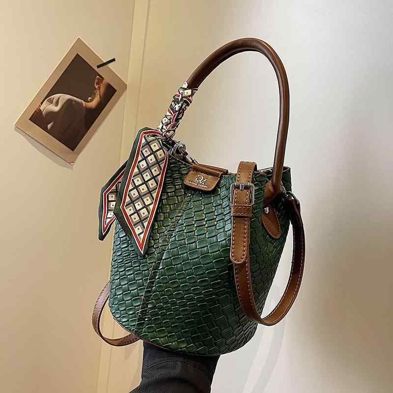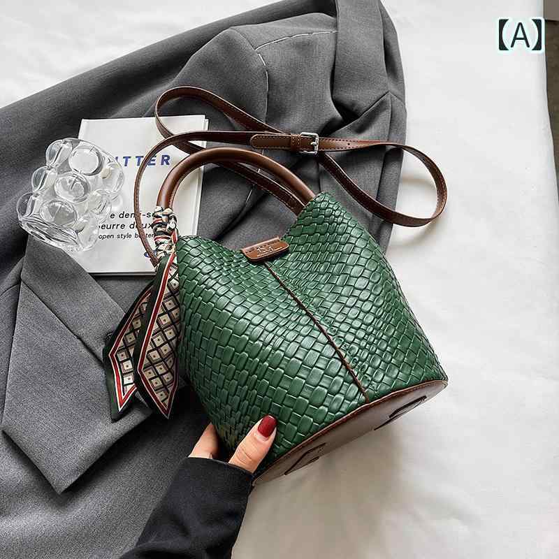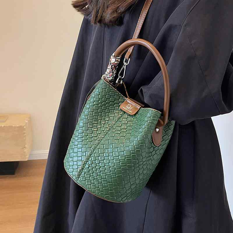 ショルダーバッグ レトロ クロコ 型押し レザーバッグ レディース 韓国系 バケツ型 スカーフ付 きれいめ おしゃれ 小型 ミニバッグ 黒 白 緑 茶色 ハンドバッグ 斜めがけ 手提げ カバン 2way 高級感 フレンチ 個性的 ワニ革風 クロコダイル柄