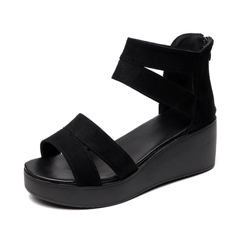 黒 サンダル ウェッジソール スエード スポーツサンダル かっこいい 大人可愛い 韓国系 ブーツサンダル ビーサン アンクル ストラップ 6cm ハイヒール 厚底 シューズ 春夏 学生 kawaii クール ビューティー 脚長 身長アップ フラット 楽
