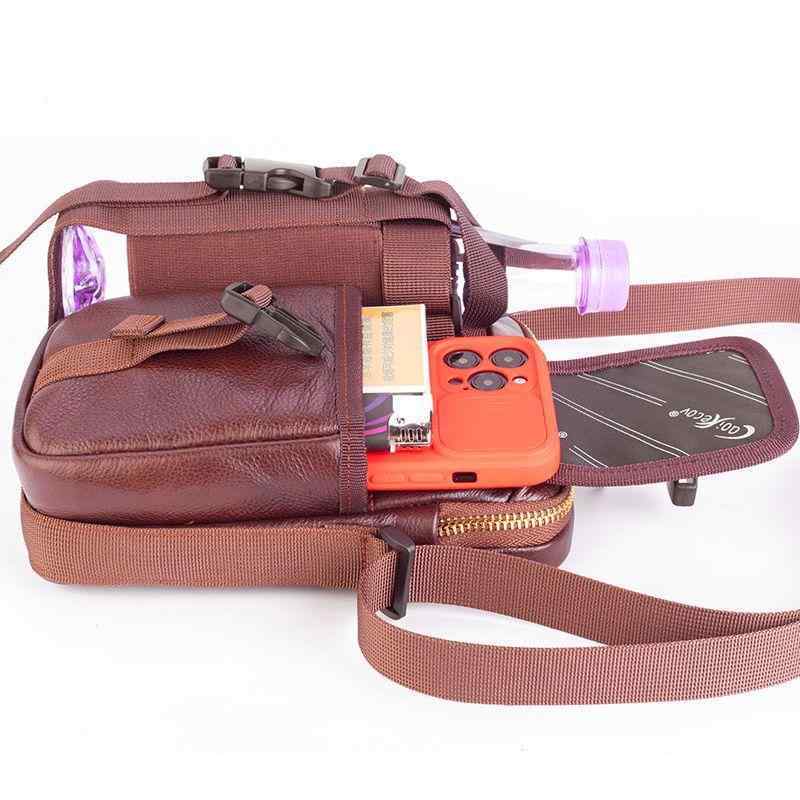 ショルダーバッグ スポーティー メンズ ボディバッグ アウトドア レジャー 黒 茶色 無地 多機能 ポケット 水筒 ペットボトル入れ 斜め掛け レザーバッグ 本革 牛革 高級感 便利 使いやすい キャンプ おしゃれ パパ ファスナー ポケット 斜め掛け