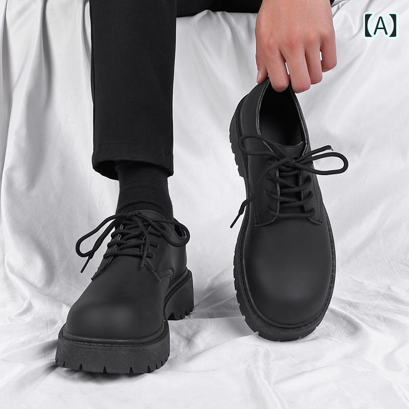 ビジネスシューズ マット 黒 かっこいい ローファー 紐あり ブラック 韓国系 レザーシューズ 厚底 ツヤなし ブラック ぽってり きれいめ きちんと感 カジュアル フォーマル 通勤 ビジネス オフィス 仕事 パパ 上品 お呼ばれ 通学 大学生 モード