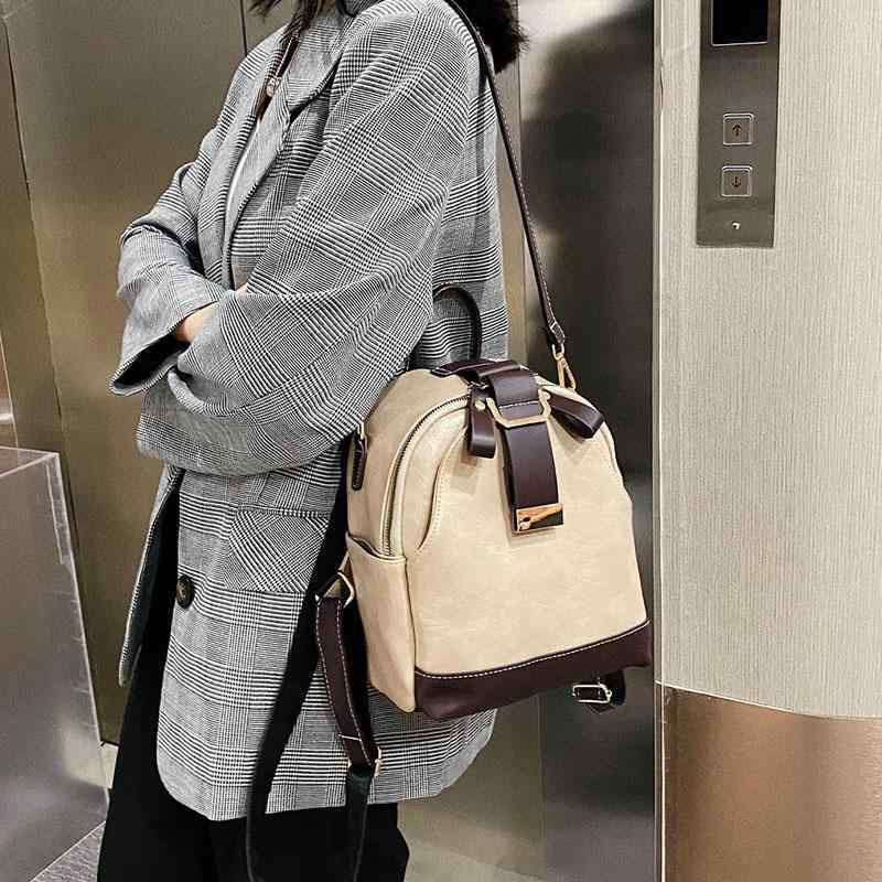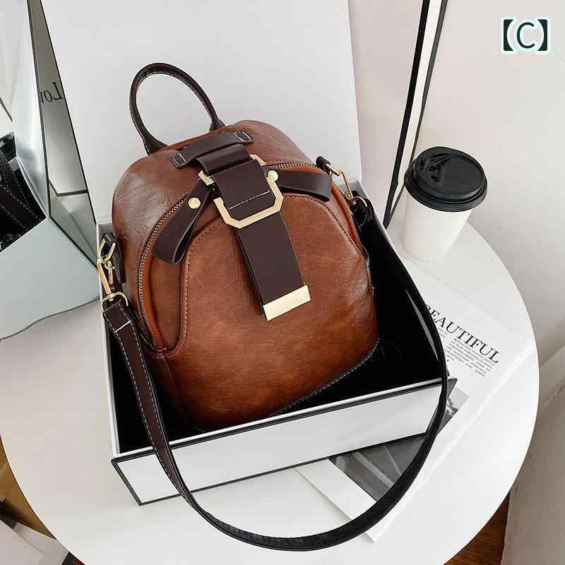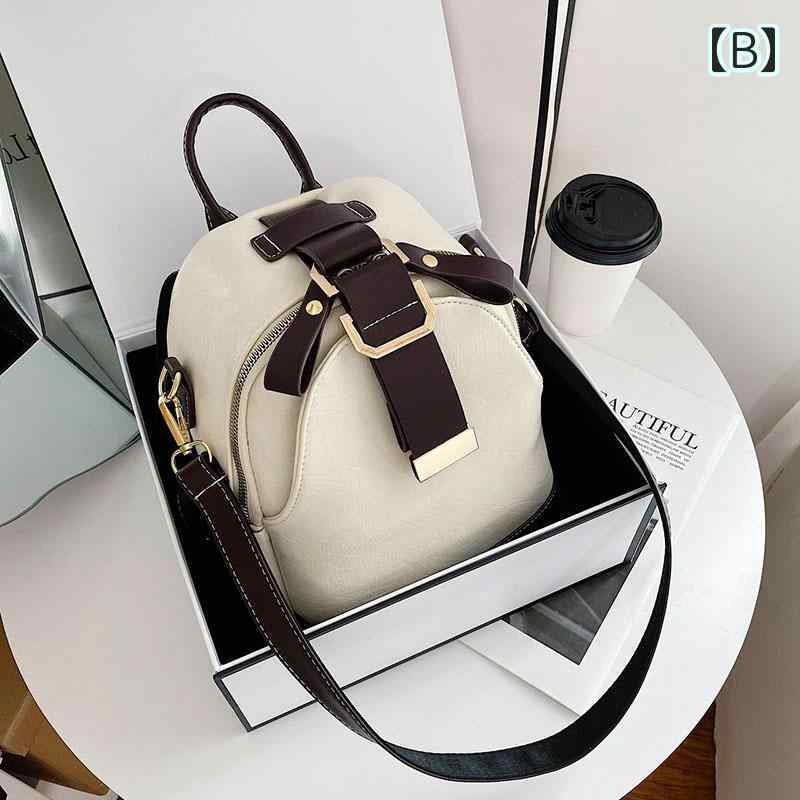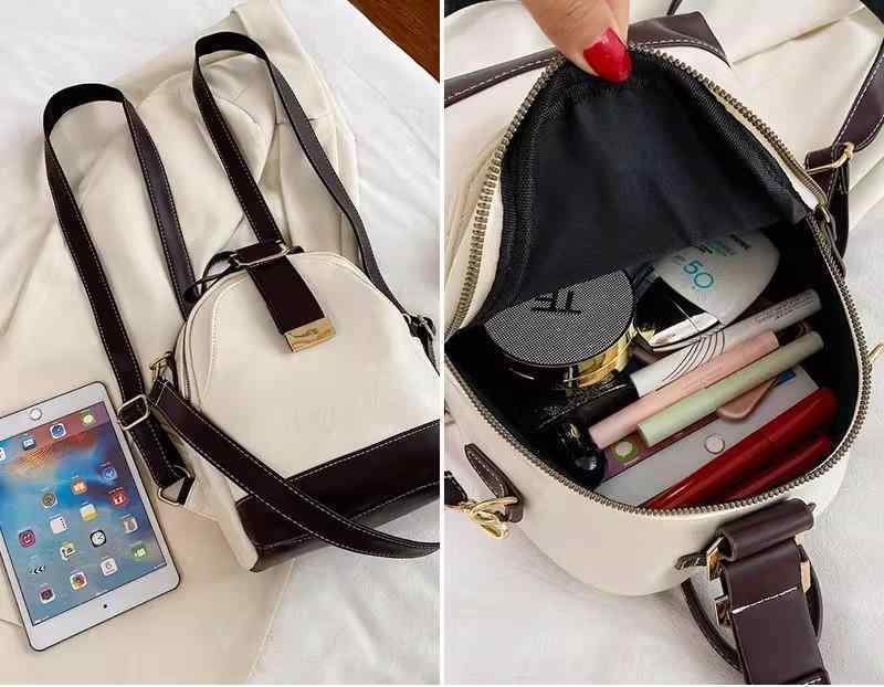 リュック ショルダーバッグ レトロ バイカラー 小型 韓国系 レザーバッグ 黒 白 茶色 カーキ 可愛い ころん おしゃれ 広沢 バックパック 斜め掛け バック 通勤 仕事 ツートン 切り替えデザイン 海外 モデル レディース ミニサイズ 個性的 OL
