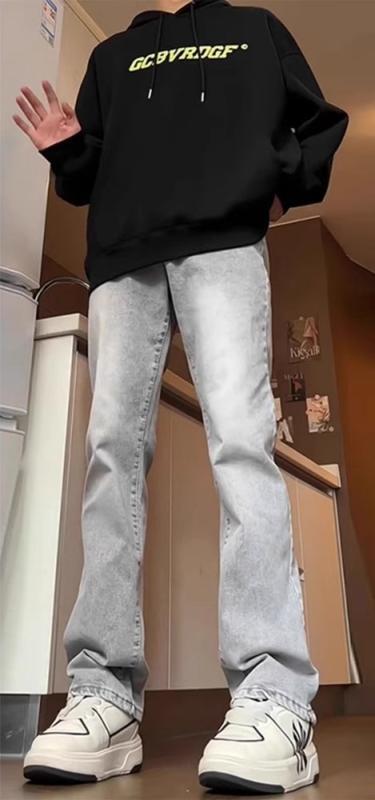 ジーンズ ズボン パンツ デニム メンズ ストレート 細身 男性用 ブルー ブラック 青 水色 黒 大きいサイズ ルーズ アメリカン ウォッシュ加工 脚長 ポケット カジュアル ストリート おしゃれ 韓国系 スタイリッシュ シンプル ジーパン 薄色 春夏