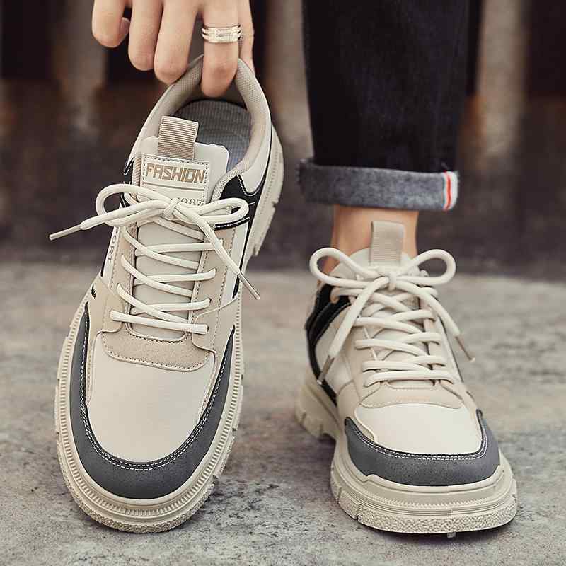 スニーカー おしゃれ きれいめ メンズ 黒 グレー ベージュ 韓国系 運動靴 男性用 靴 くつ ブラック バイカラー ステッチ レザースニーカー 厚底 かっこいい 個性的 シンプル モノトーン カジュアル 作業 ワークアウト 靴 通勤 通学 大学生 パパ