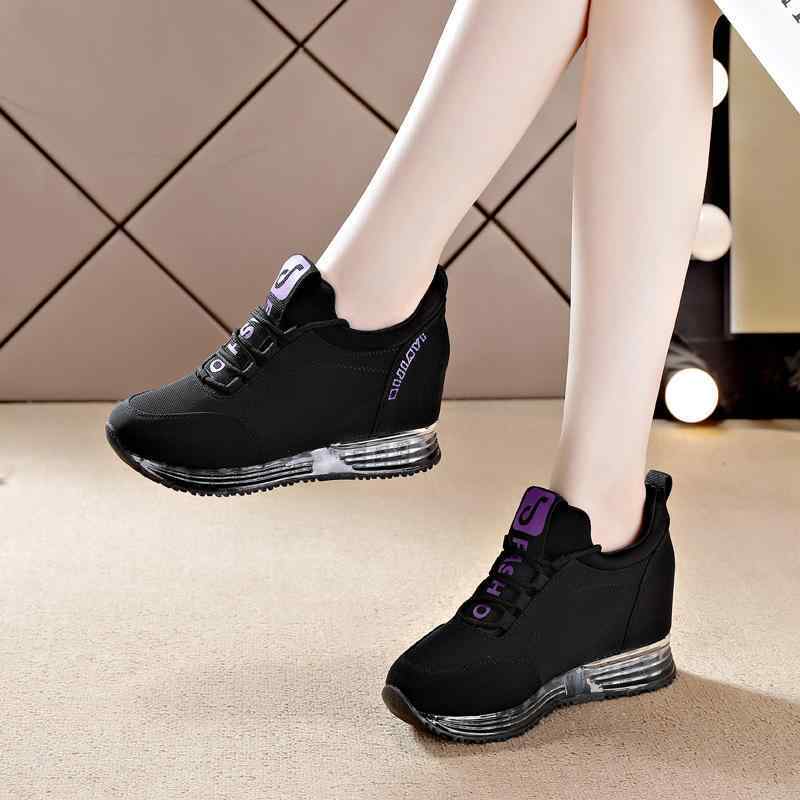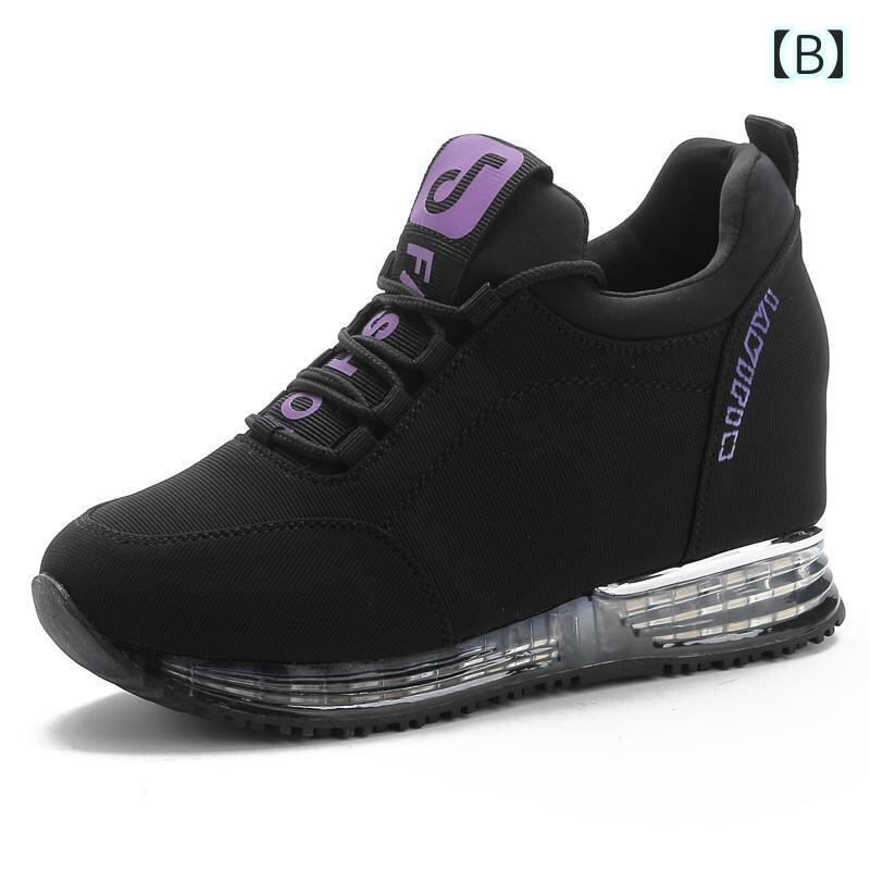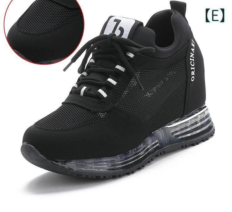スニーカー 黒 ウェッジソール シークレットヒール かっこいい 韓国系 レディース スポーツ シューズ 高級感 オシャレ 身長アップ 脚長 美スタイル インヒール ハイヒール モード ブラック コーデ ローカット 黒スニーカー こなれ感 メッシュ 通気性