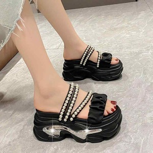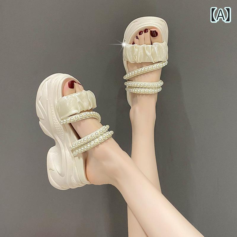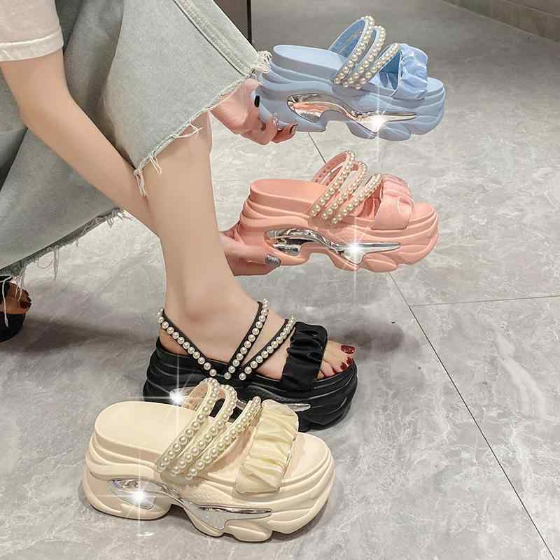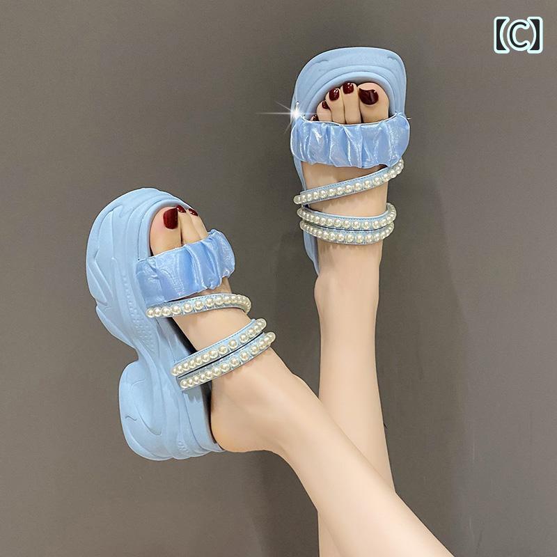 厚底 サンダル 可愛い パール メタルデザイン ビーチサンダル 韓国系 レディース 黒 白 水色 ピンク 個性的 ユニーク ビーサン スポサン くしゅくしゅ ギャザー 2way ストラップ 春夏 ガーリー シューズ 量産系 kawaii 女子 厚底靴