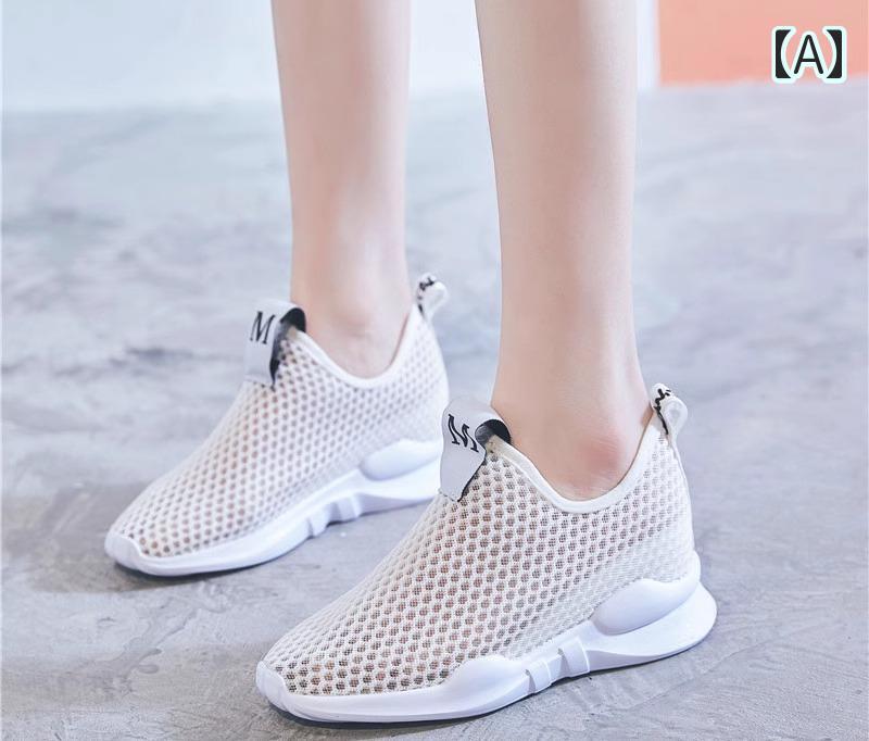 スニーカー メッシュ 透け感 通気性 レジャー アウトドア マリン シューズ 軽量 快適 衝撃吸収 黒 白 ウェッジソール 3cm 5cm 7cm 厚底スニーカー 春夏 運動靴 肌見せ 蒸れにくい 涼しい 海辺 ビーチ 無地 個性的 網 あみあみ