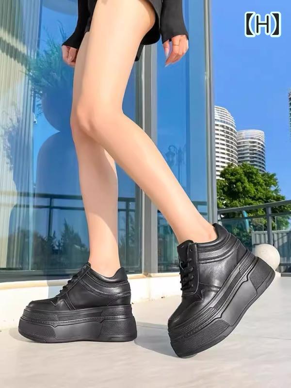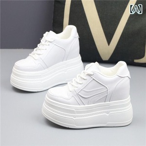 超厚底 スニーカー 白 黒 韓国系 8cm 10cm 12cm 14cm ハイヒール レディース かっこいい 個性的 運動靴 本革 レザースニーカー 身長アップ 脚長 美スタイル プラットフォーム クール オルチャン系 女子 ブラック ホワイト コーデ