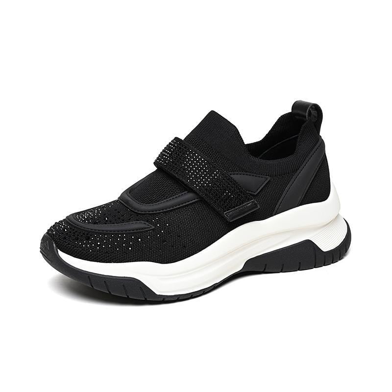 スニーカー キラキラ ラインストーン スリッポン レディース 黒 白 個性的 大人カジュアル 厚底 ソフトソール 運動靴 オシャレ きれいめ 通気性 蒸れにくい 疲れにくい 紐なし マジックテープ モノクロ ブラック ホワイト 高級感 クリスタル セレブ