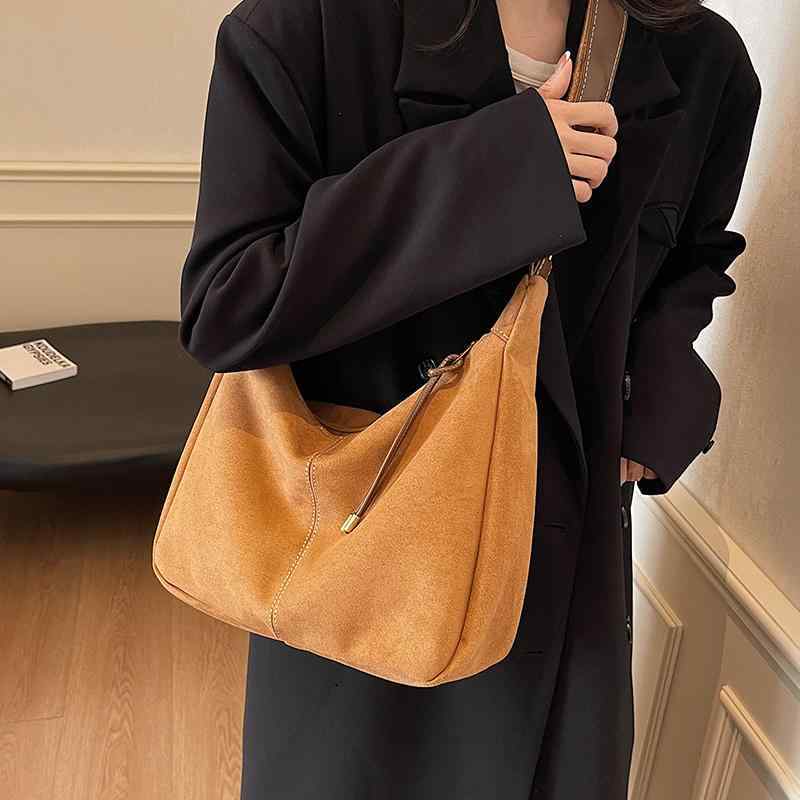 トートバック スエード風 きれいめ カジュアル 肩がけ ショルダー 斜めがけ バック 大容量 レディース 茶色 ブラウン カーキ 黒 白 無地 ファスナー 柔らかい ソフト レザーバッグ こなれ感 クロスボディ 通勤 通学 ビジネス 大学生 秋冬 カバン