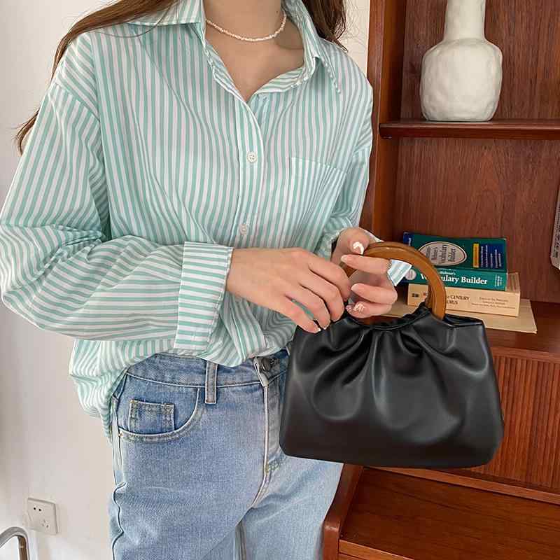 ショルダーバッグ ハンドバッグ ミニバッグ レディース きれいめ 白 プリーツ 木製ハンドル レトロ アンティーク風 韓国系 おしゃれ 2way 斜めがけ 手提げ カバン バイカラー スマホ リップ エレガント 上品 個性的 お呼ばれ ナチュラル