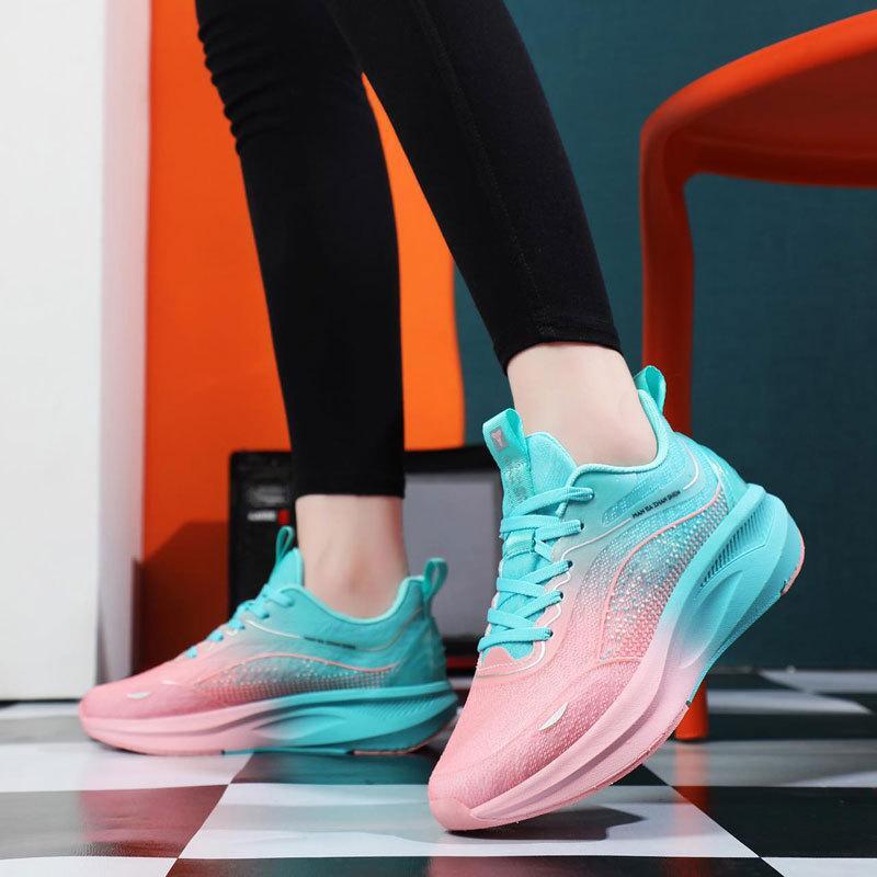 スニーカー レディース メンズ グラデーション カラフル 運動靴 きれいめ 個性的 クッション ソフトソール 動きやすい ランニング トレーニング シューズ 配色 バイカラー 黒 白 ピンク 青 ブルー オレンジ 黄色 イエロー 緑 グリーン 華やか