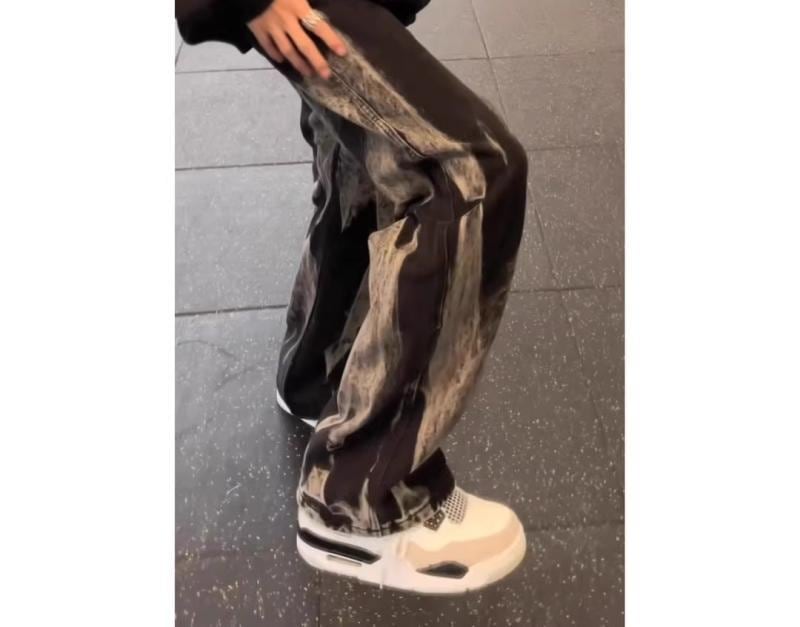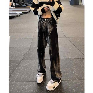 ブラックデニム 個性的 グラデーション メンズ ジーンズ ズボン パンツ デニム 韓国系 男性用 黒 ブラック タイダイ 大きいサイズ ルーズ ストレート アメリカン ウォッシュ加工 オシャレ 男子 カラーデニム 黒コーデ ユニーク バイカラー ダーク