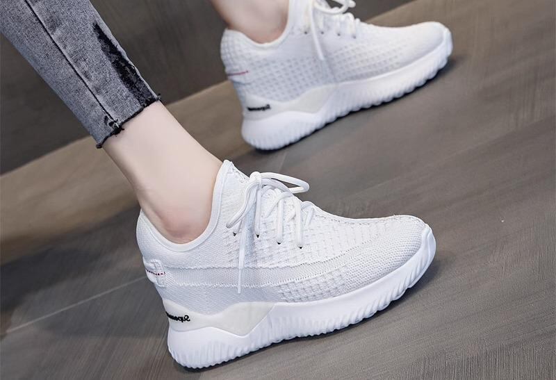 スニーカー ウェッジソール 8cm ヒール 黒 白 グレー レディース ソックス ニット生地 厚底 隠れヒール 高ヒール 身長アップ モノトーン ベーシック かっこいい セレブ 個性的 春スニーカー 夏スニーカー 通気性 蒸れにくい ココナッツ 脚長