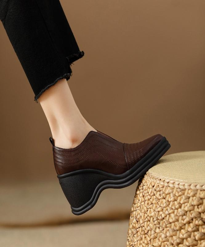 9cm ハイヒール ブーティ 本革 牛革 かっこいい ウェッジソール ブーツ パンプス 個性的 マニッシュ 高級感 黒 ブラック 茶色 ブラウン ポインテッドトゥ 革靴 高ヒール メンズライク 深口 オフィス ビジネス お呼ばれ パーティーシューズ