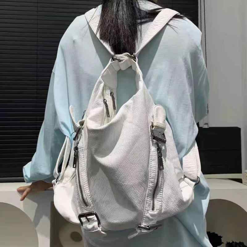 ショルダーバッグ かっこいい リュック 黒 白 レディース 大容量 韓国系 クール ロック レザーバッグ たくさん入る A4 通勤 通学 学校バッグ 大学生 水筒 傘 カジュアル 高級感 革バッグ マット 大人 韓国女子 オフィス 無地 モノクロ 個性