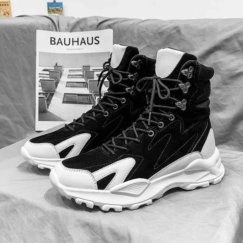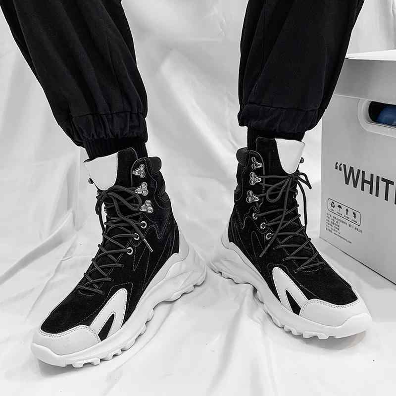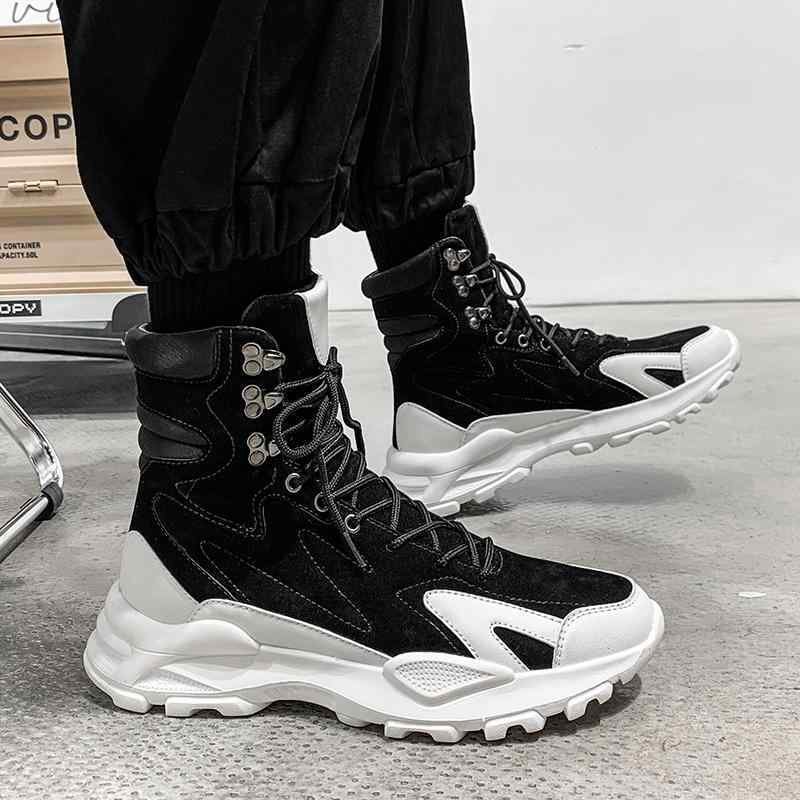 スニーカー ブーツ ハイカット かっこいい スエード 黒 灰色 緑 バイカラー 韓国系 個性的 運動靴 メンズ 男性用 ショートブーツ ロック ブラック グレー グリーン ストリート パンク 編み上げ レースアップ 切り替えデザイン 異素材 SNS映え