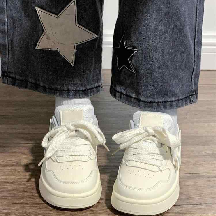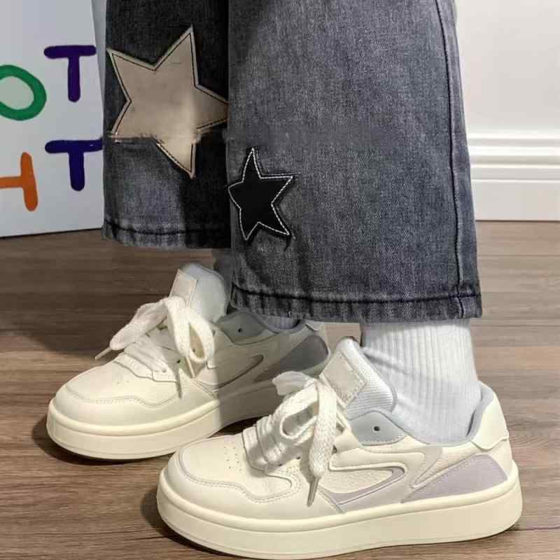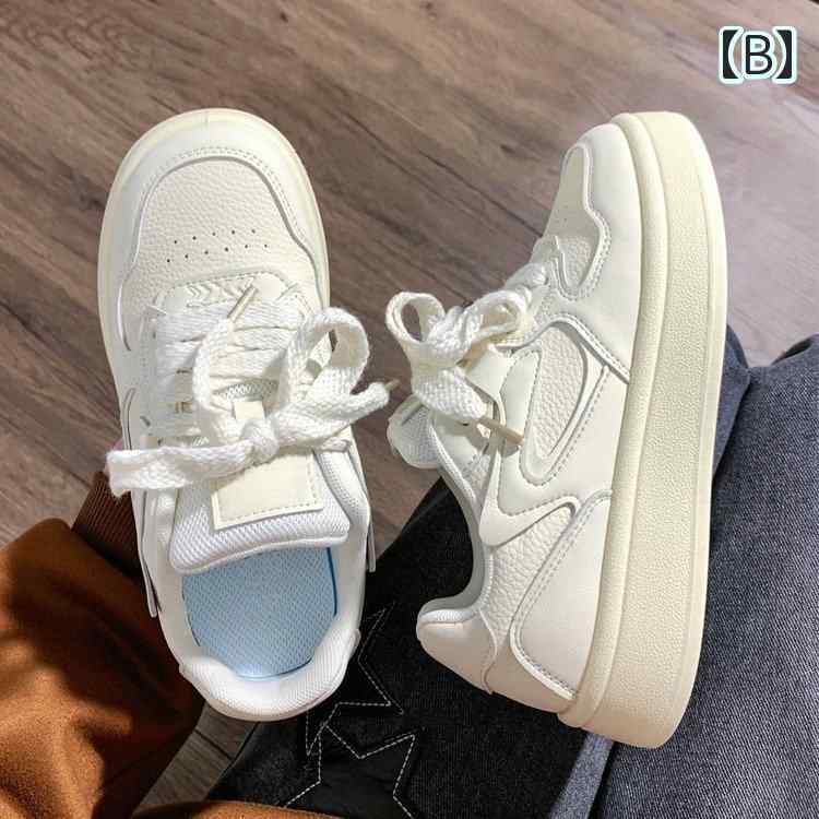 白スニーカー 運動靴 韓国系 可愛い シンプル ベーシック スニーカー 韓国系 レディース 女性用 グレー ホワイト ぽってり かわいい おしゃれ ナチュラル フラット 運動靴 ホワイトコーデ 定番 使いやすい 合わせやすい 春夏 淡色 春色 レザー