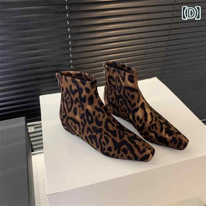 ショートブーツ スエード かっこいい ウェッジソール 黒 茶色 ヒョウ柄 カーキ 無地 ブーティ 韓国系 スクエアトゥ ブーツ ショート丈 アンクル丈 レオパード柄 アニマル柄 個性的 隠れヒール インソール シークレット 身長アップ 春 秋 レディース