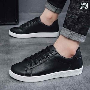 黒スニーカー シンプル メンズ 白スニーカー きれいめ おしゃれ レザースニーカー 男性用 韓国系 ベーシック モノトーン ホワイト ブラック 無地 バイカラー 大学生 ラフ タウンユース デイリー お呼ばれ シティ 使いやすい 合わせやすい 運動靴
