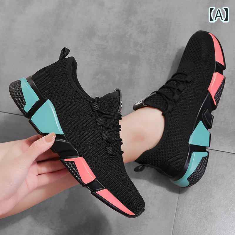 レディース スニーカー ランニング フィットネス シューズ 滑り止め 衝撃吸収 ソフトソール 軽量 快適 動きやすい 室内用 黒 カラフル 運動靴 メッシュ 通気性 個性的 韓国系 ウォーキング ジム トレーニング 作業 ワーク シューズ ミックスカラー