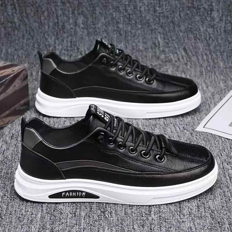 スニーカー メンズ きれいめ レザー 防水 滑り止め カジュアル 黒 白 ベージュ 無地 韓国系 男子 運動靴 レザーシューズ ビジネスシューズ 通勤 オフィス 大学生 スタイリッシュ ニッチ セレブ モノチーン 合わせやすい 大学生 作業 ワークブーツ
