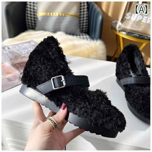 もこもこ スリッポン パンプス ウェッジソール 韓国系 可愛い 黒 茶色 白 バレエシューズ風 個性的 レトロ ボア シューズ ストラップ 厚底 靴 レディース オルチャン ブラック ホワイト ブラウン 無地 秋 冬 春 レトロ 脚長 ハイヒール