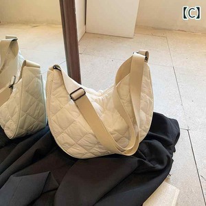 ショルダーバッグ もこもこ キルティング クロワッサン ポケット やわらかい 大容量 レディース カジュアル 韓国系 個性的 三日月型 黒 白 緑 ファスナー 使いやすい ラフ 学生 ママ 旅行 便利 ソフト スマホ 買い物 ナチュラル 斜めがけ カバン