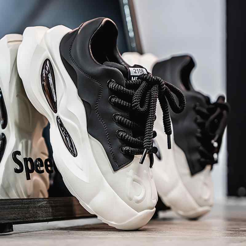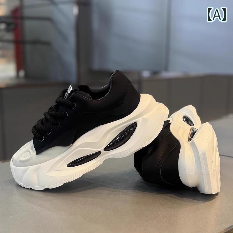 厚底スニーカー メンズ 個性的 かっこいい バイカラー スニーカー 韓国系 白 黒 エアクッション 運動靴 男性用 靴 くつ ダッドスニーカー 厚底 ブラック 緑 グレー ツートン ごつめ ストリート モノクロ デザイン性 ニッチ 学生 通学 SNS
