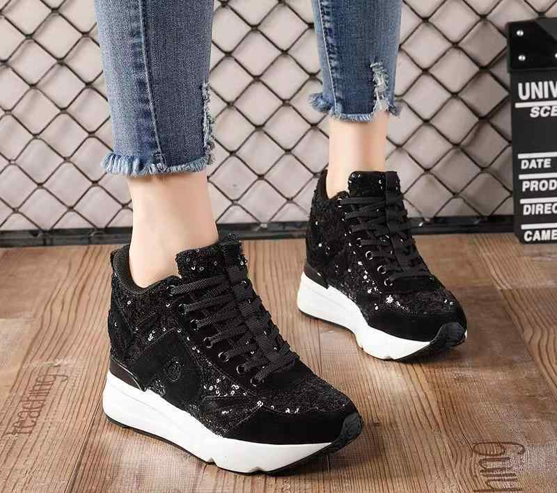 10cm 超厚底 スニーカー スパンコール キラキラ 黒 個性的 運動靴 韓国系 ダッドスニーカー 華やか セレブ モノトーン オールブラック ウェッジソール 身長アップ 脚長 きれいめ 黒スニーカー 煌びやか 輝く 美人 厚底スニーカー 大人女子