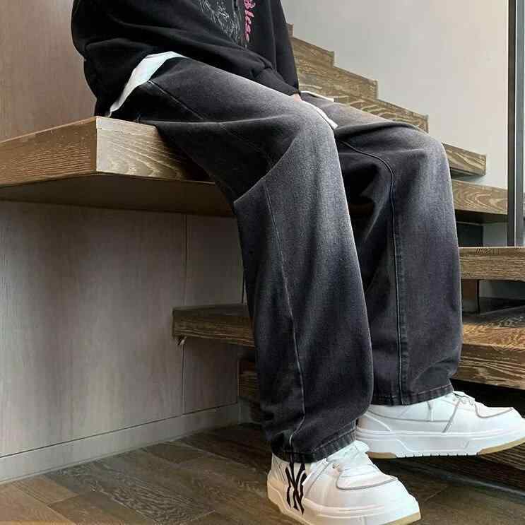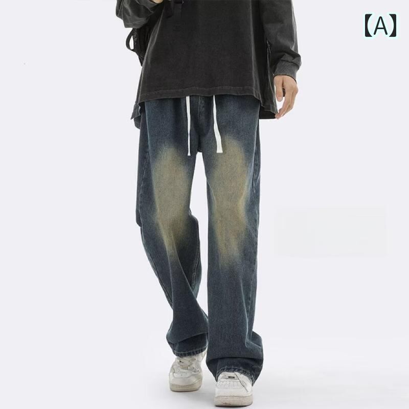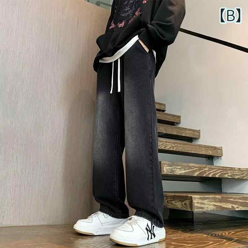 ジーンズ ズボン クール メンズ シンプル ウエストゴム パンツ デニム 古着風 韓国風 男性用 ブルー ブラック ストレート 大きいサイズ ベーシック ヘビロテ リラックス ゆるパンツ 抜け感 カジュアル 楽ちん 着回し 学生 ジーパン 淡色 ラフ