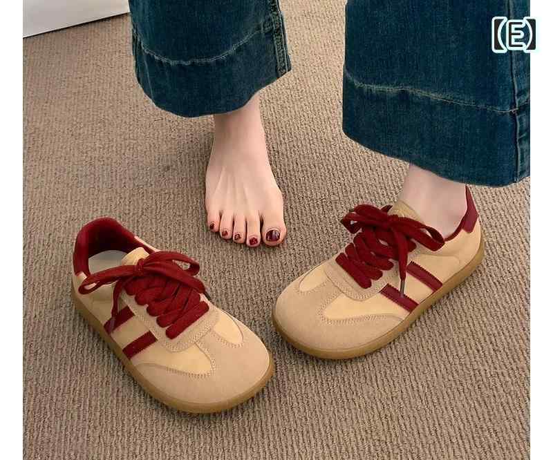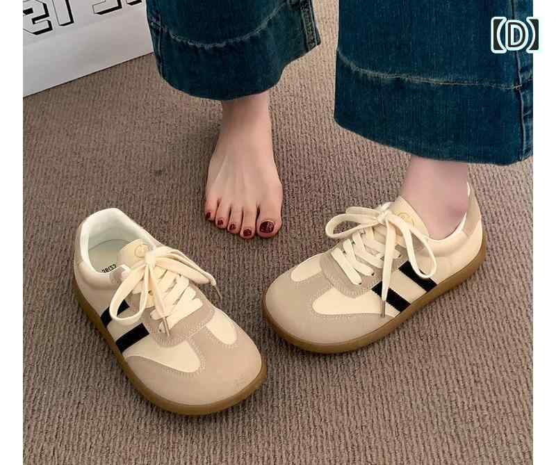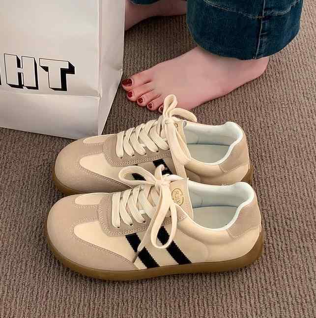 スニーカー 韓国系 レトロ 可愛い くすみカラー 運動靴 女性 レディース シューズ スポーティー ライン 黒 白 茶色 バイカラー 個性的 フラット 学生 通学 通勤 ふわふわ もこもこ ナチュラル 軽い おしゃれ カラフル オルチャン系 ママ