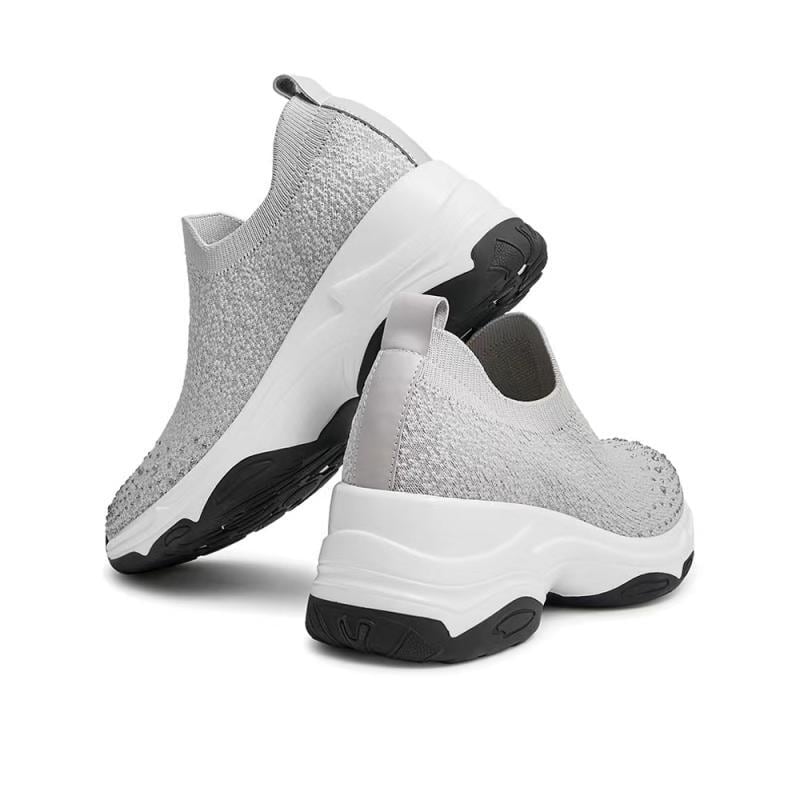 スリッポン スニーカー ラインストーン 黒 灰色 バイカラー シンプル 厚底 かっこいい セレブ シューズ ブラック グレー クッション ソール 柔らかい キラキラ パヴェ クリスタル 抜け感 運動靴 スタイリッシュ マダム おしゃれ ラフ 抜け感