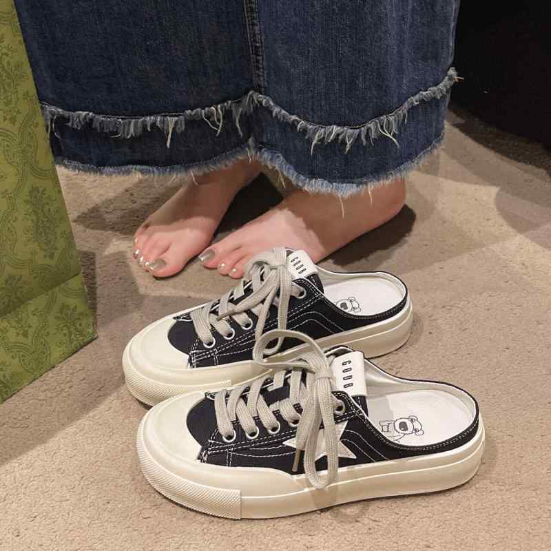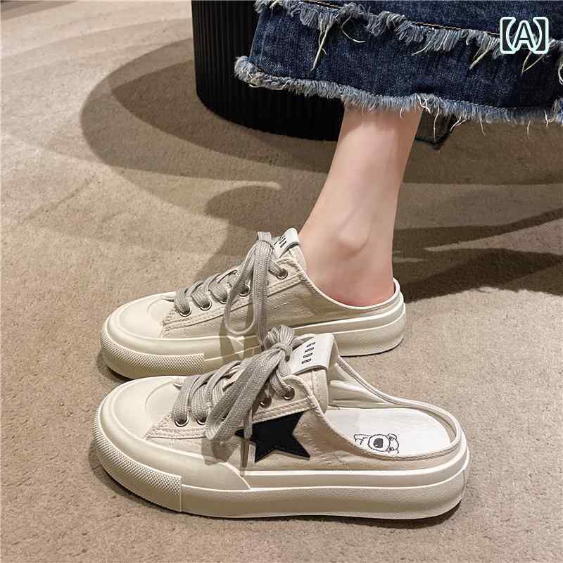 スニーカー サンダル レディース 可愛い キャンバス シューズ 黒 白 星型 スター 韓国系 スリッパ モノトーン 春夏 帆布 バイカラー レトロ キュート カジュアル 大学生 通学 春夏 運動靴 かかとなし オルチャン系 女子 ブラック ホワイト