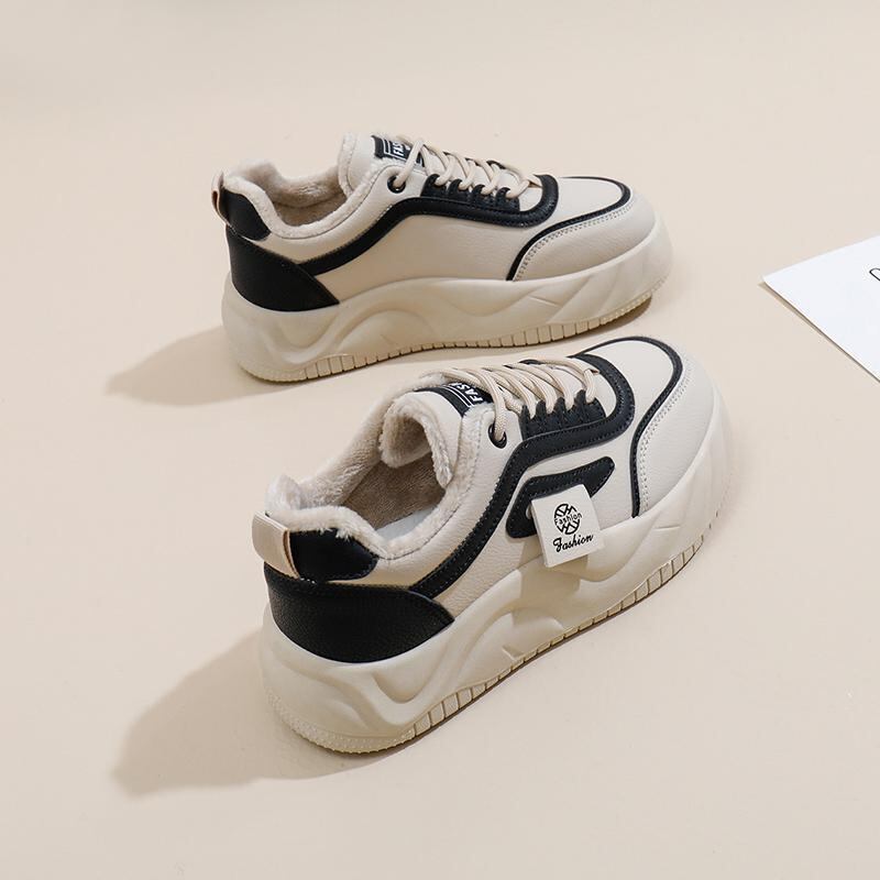 厚底 スニーカー もこもこ 裏起毛 内ボア 可愛い 韓国系 運動靴 レディース 秋 冬 モノトーン ベージュ 黒 バイカラー スポーツ シューズ フラット レトロ おしゃれ 寒くない 内側フリース 防寒 オルチャン系 女子 温かい ふわふわ ローカット