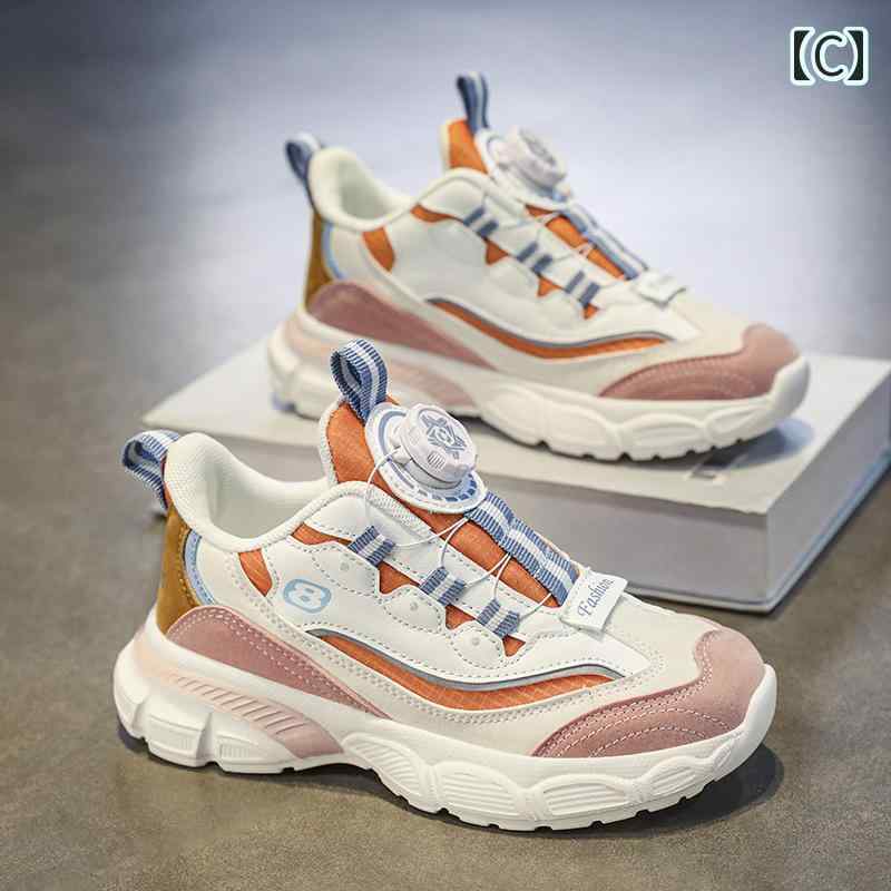 ダッドスニーカー 黒 白 かっこいい 韓国系 スポーティー スニーカー レディース キッズ 子供用 モノトーン バイカラー オレンジ ピンク 爽やか 春スニーカー 夏スニーカー 中学生 高校生 ボタンデザイン 個性的 映える オルチャン 女子 楽ちん