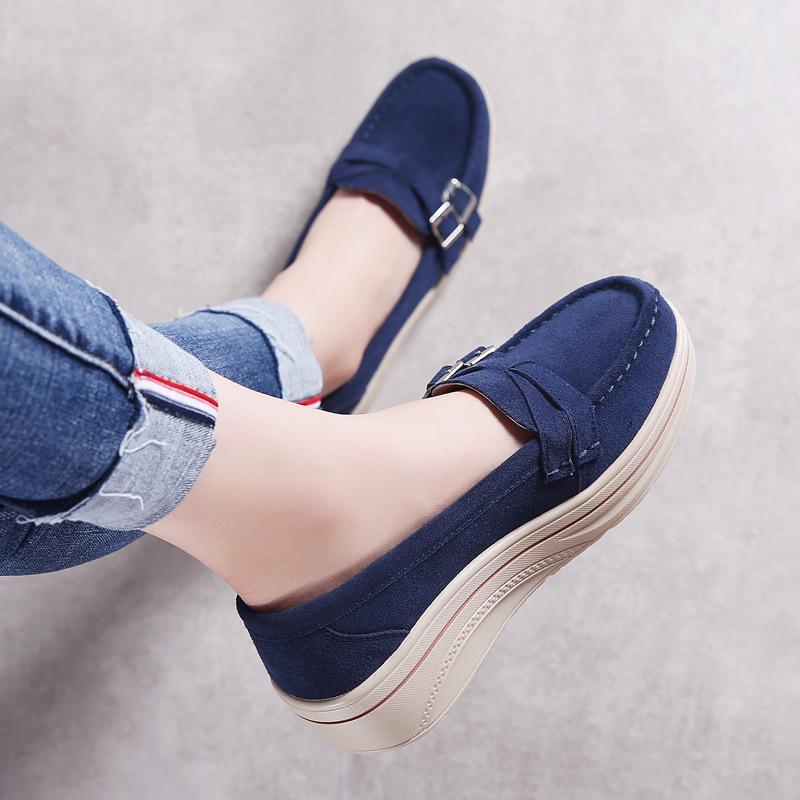 ローファー 厚底 可愛い スリッポン ウェッジソール レディース 韓国系 プラットフォーム シューズ 本革 スエード 浅口 バイカラー レトロ きれいめ 赤 青 ベージュ 黒 グレー ベルトデザイン 脚長 身長アップ 春シューズ 個性的 抜け感 革靴