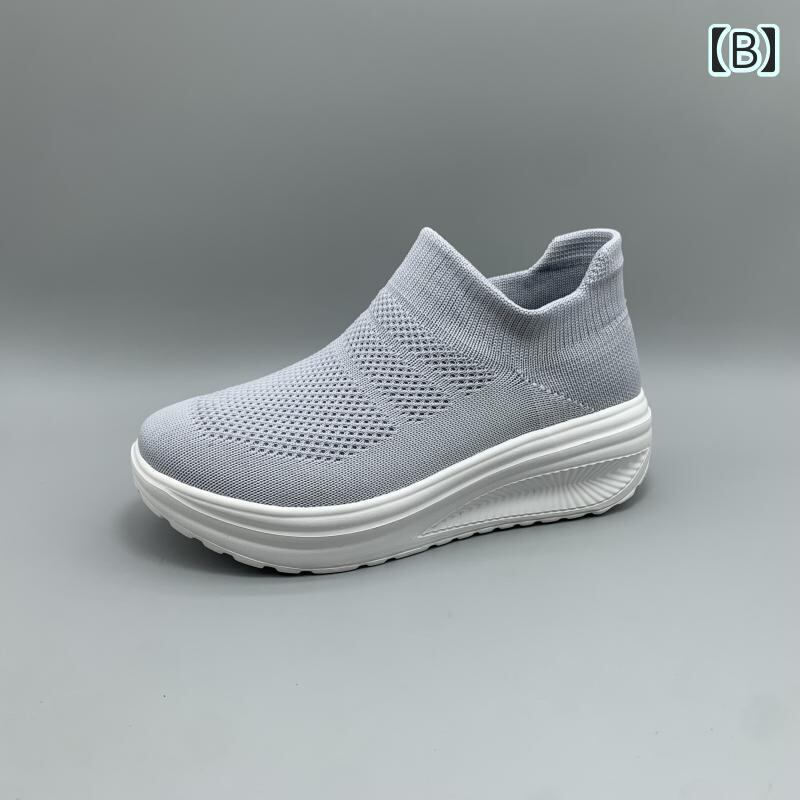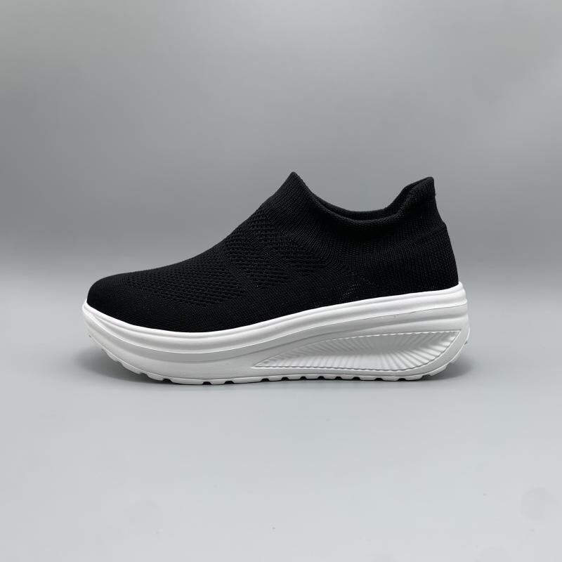 シンプル スリッポン スニーカー 厚底 ウェッジソール 黒 白 緑青 バイカラー スポーツ シューズ クッションソール 5cmヒール 大人カジュアル メッシュ 通気性 柔らかい ソックス生地 春夏 運動靴 レジャー スタイリッシュ 身長アップ クール
