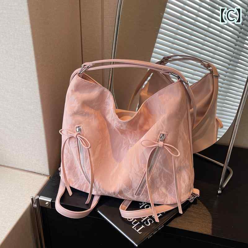 トートバッグ レトロ 可愛い リボン リュック 2way レディース 女性用 黒 白 青 ピンク シルバー 箔柄 大容量 多用途 タブレット 韓国系 個性的 A4 通学 通勤バッグ 大学生 OL 便利 映える おしゃれ こなれ感 ファスナー 使いやすい
