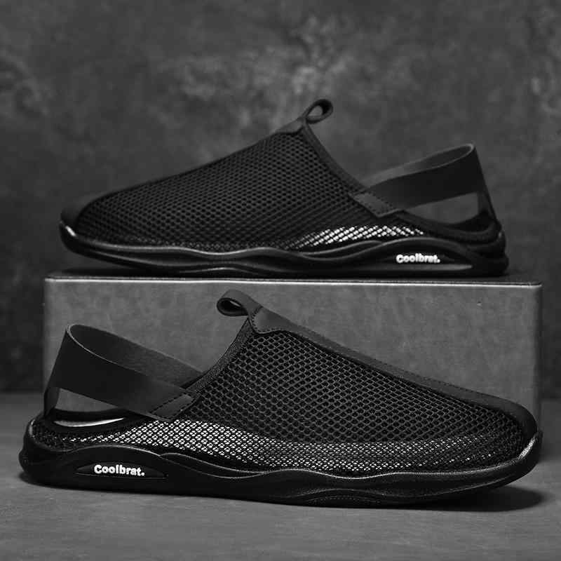 メッシュ スリッポン サンダル 薄型 通気性 軽量 スポーツサンダル メンズ 韓国系 黒 ブラック ベージュ シンプル 透け感 蒸れにくい 春夏 シューズ 抜け感 ルーズ オルチャン系 爽やか 男子 大学生 レジャー アウトドア タウンユース 日常 上品